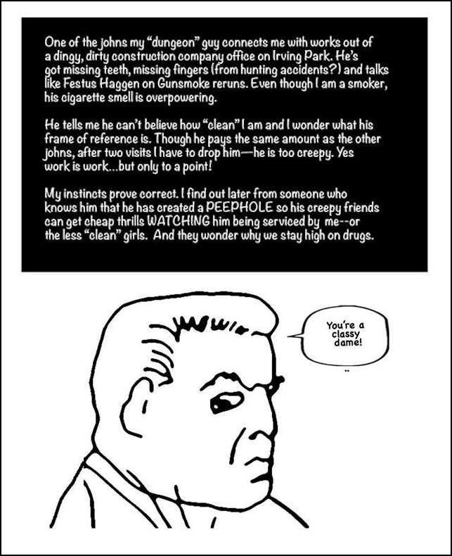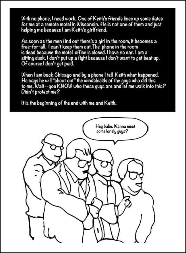 I illustrated and helped publish Diary of a High-Risk Lifestyle by Kay Buckingham, documenting the experiences of street prostitutes in Chicago. My interest in this topic began fifteen years ago when Chicago experienced a surge of murders targeting street walkers. These women were drug addicts. They were getting into cars with strangers and were occasionally murdered. They were often out of touch with their families, and sometimes were not reported missing.