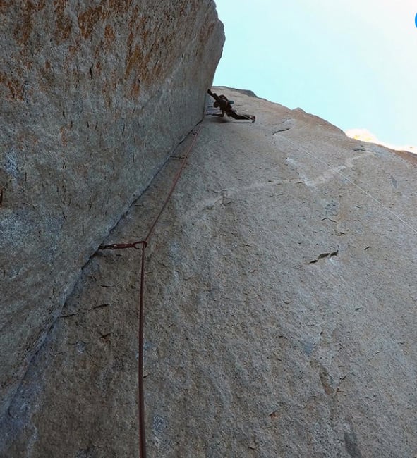 Many years ago, Eric and I climbed Yosemite’s Astroman, a challenging 1100-foot overhanging route. He had done it before and coached me through each pitch. With his guidance, I was able to lead the hardest parts, then repeat the whole thing a few months later with another partner. Two photos of the climb are below.